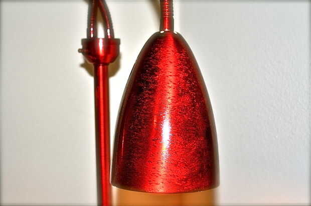 El objetivo con la pintura de anodizado de caramelo es un acabado transparente (efecto de capa) aplicado sobre el color base existente en este caso, lámpara latón oxidado.