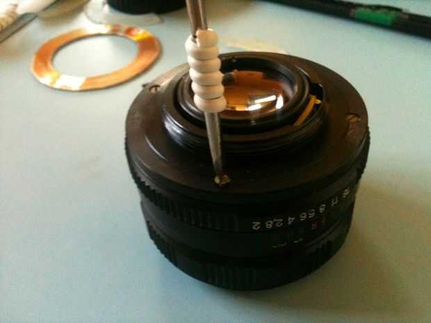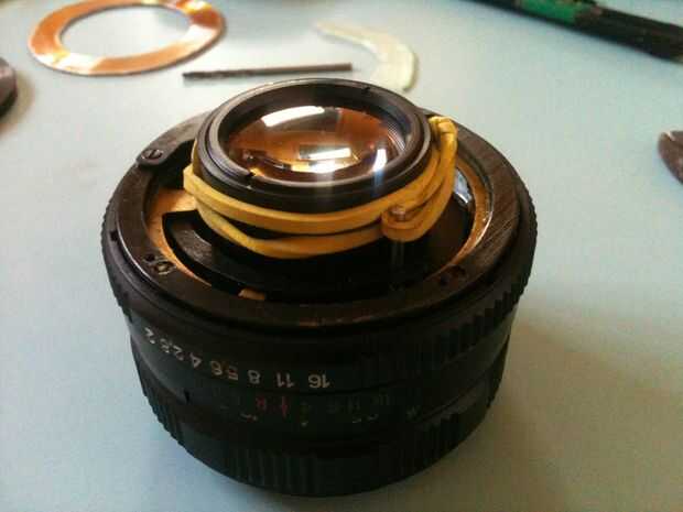 hacemos esto con una banda elástica para que podamos abrir y cerrar manualmente más adelante lo ciafragma.