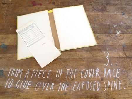 A continuación, presione el papel en el lomo de tu libro y suavizar el resto en el interior cubierta.