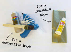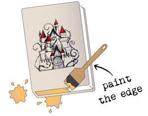 Añadir poco generosa de pegamento en el interior de la cubierta y cierra su libro, efectivamente pegar la tapa de cierre (me doy cuenta el resto de las páginas se abrirá todavía, vamos a llegar a eso). Hacer esto para la contraportada. Ahora, para realmente darle ese aspecto antiguo y dorado, con su libro cerrado, cuidadosamente pintar el lado de las páginas con su pintura de oro o metálico. Esto imita de viejos libros de lujo y da su libro ese toque especial y decorativo. Además, la pintura en el lado será básicamente pegar todas sus páginas cerradas, así que ahora lo que tienes es una manera genial para mostrar el diseño de la cubierta.