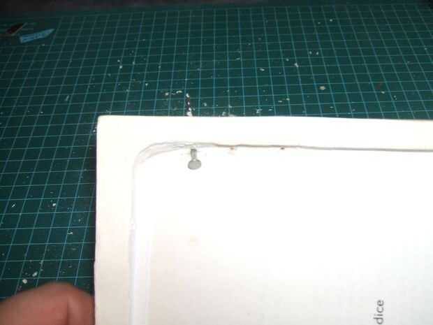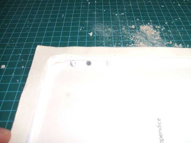 Es necesario notar donde están los botones en su tablet. En la mía eran anguladas 45 grados hacia abajo del horizonte por lo que fueron los agujeros que ha perforado en ese ángulo. Muy bien trabajado ya que salieron justo en el borde del libro. dicho esto, hubiera sido mejor si salieron las páginas como mis botones ahora haceros cosas sueltas.