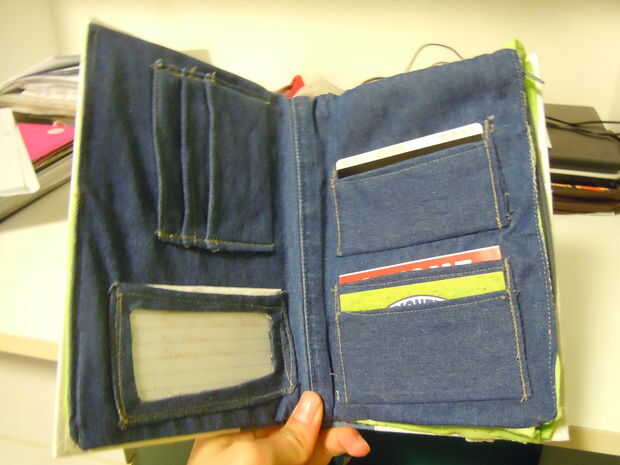 Es un concepto bastante simple, pero realmente realizar tomó más esfuerzo y habilidad que yo pensaba! Por ejemplo, no podía cortar las páginas del libro muy eficientemente - los 'troncos' de las páginas están todavía un poco desiguales. Además, coser bolsillos de tarjeta en particular es muy incómodo (que conocía de experiencias anteriores). Aún así, estoy contento con la forma en que resultó. Si nunca encuentro el momento, creo que podría hacer otro, y trabajo en lo que parecen más pulido.