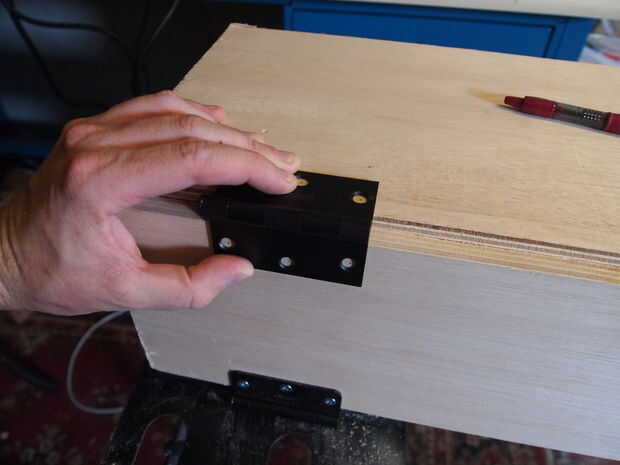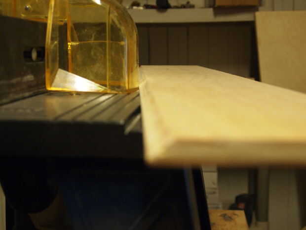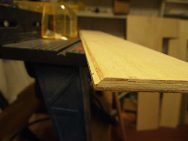 La Junta que apoyos los focos de luz y la plataforma de la bombilla, es necesario un 45 grados ángulo de corte de lado a fin de que juntos doblar correctamente cuando se cierra el cuadro. Lo hice con un router de mesa a 45 grados corte poco.
