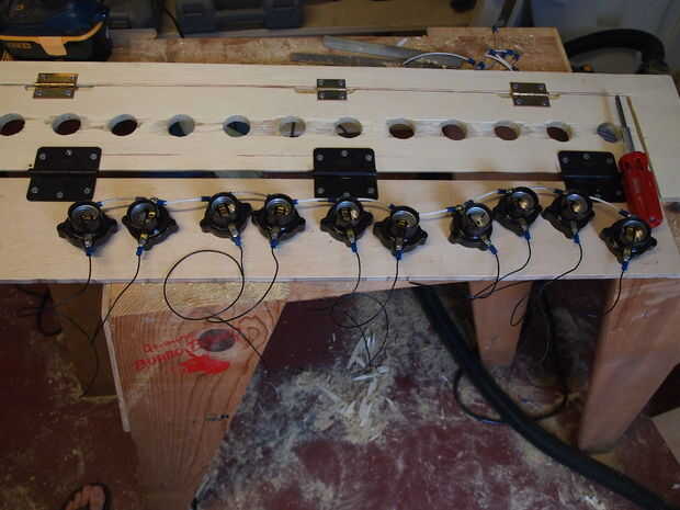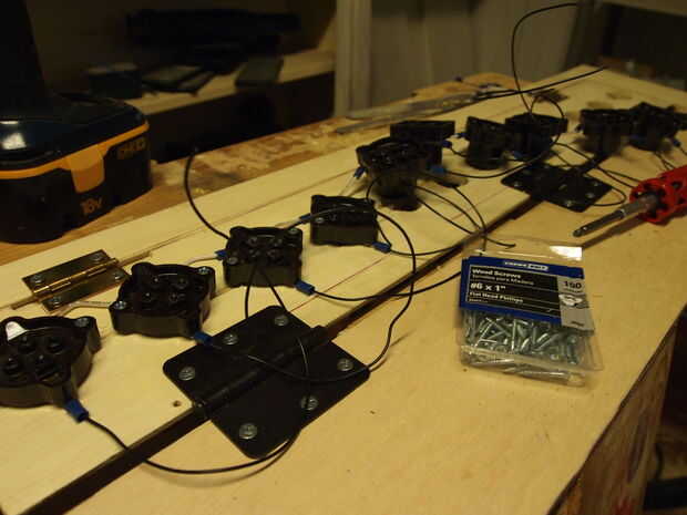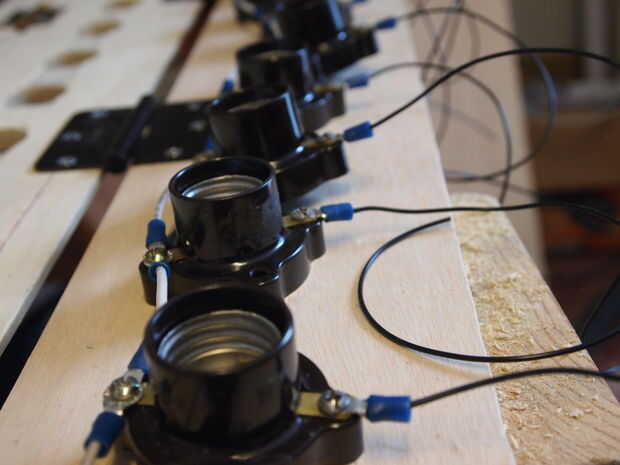 de todos modos, los enchufes tienen dos conexiones para el eléctrico. Un lado sobre todo los bulbos es conectado todo el camino de regreso para conexión a la red. El otro lado está conectado a un relé (ver siguiente paso), que está conectada al otro lado de la red. Así que esencialmente todas las bombillas están conectadas en paralelo, que es realmente la única manera de hacer esto.