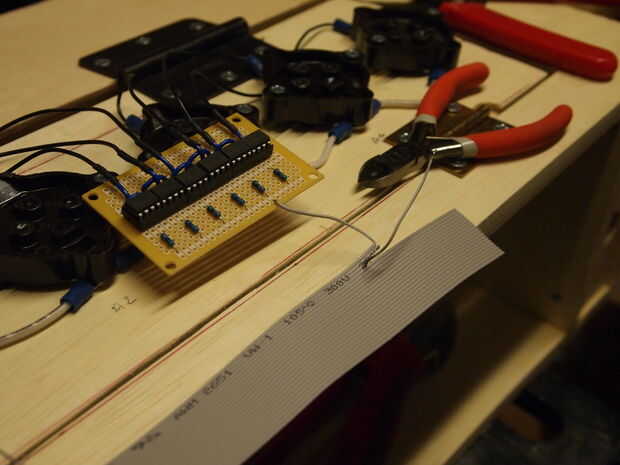 El microcontrolador se conecta a las placas de dos relés con una tira de cable de cinta, explicada en la sección siguiente.