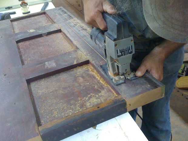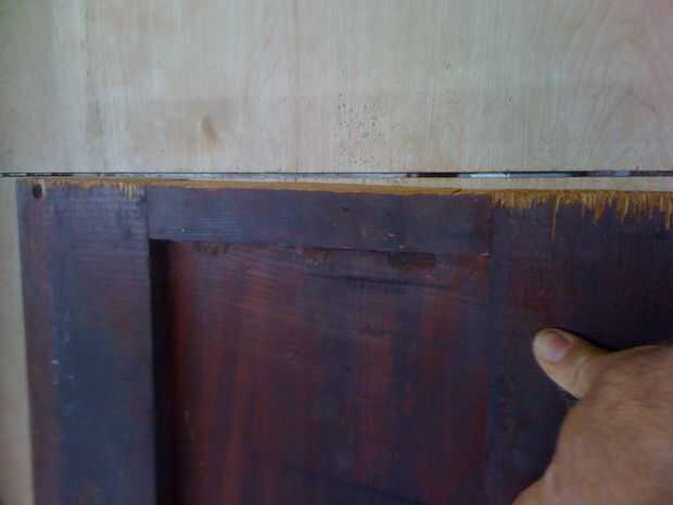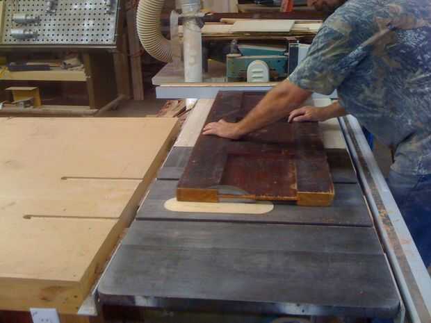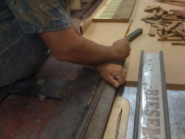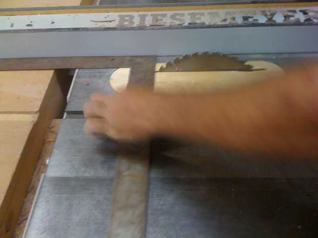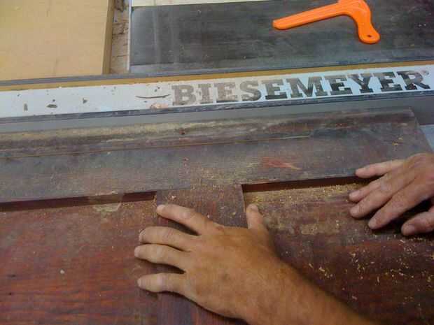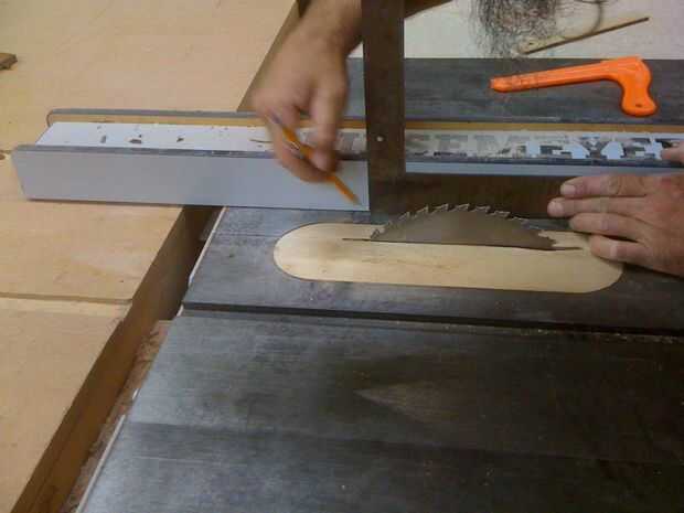 Para utilizar la tabla vio, primero establecemos la altura de la hoja para cortar a través del espesor de la madera de la pieza de piano lateral. Luego fijamos el tope metálico a la distancia necesaria para cortar la primera línea. Luego marcamos en la cerca el diámetro de la hoja (Recuerde - es el ancho de la hoja a nivel de tabla que cuenta al hacer este tipo de corte de arriba hacia abajo). Marcando el ancho de la hoja en la cerca, nosotros podríamos línea al final del corte con el extremo de la hoja sin siquiera ver la hoja.