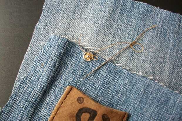 Originalmente planeaba usar una camiseta vieja y hacer un parche para coser sobre el caso pero luego me decidí a usar el parche en la parte trasera de los pantalones vaqueros.