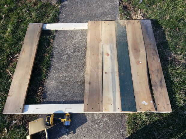 Atornille las placas de 2 x 4. Me pareció lo más fácil empezar con el tablero de fondo. Asegúrese de que esté al ras con los lados y la parte inferior de la 2x4s. Después de que su seguro sólo Deslice la Junta siguiente hacia abajo firmemente contra él, entonces sólo tienes que lavar los lados contra el 2 x 4. Esto hace fácil apilar los tableros y fíjelos.