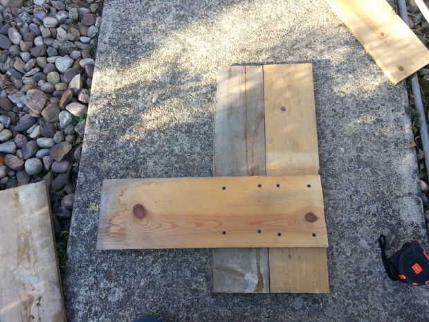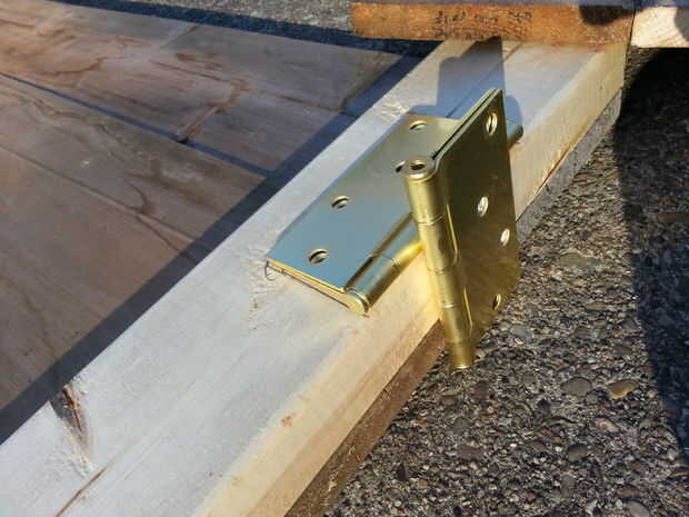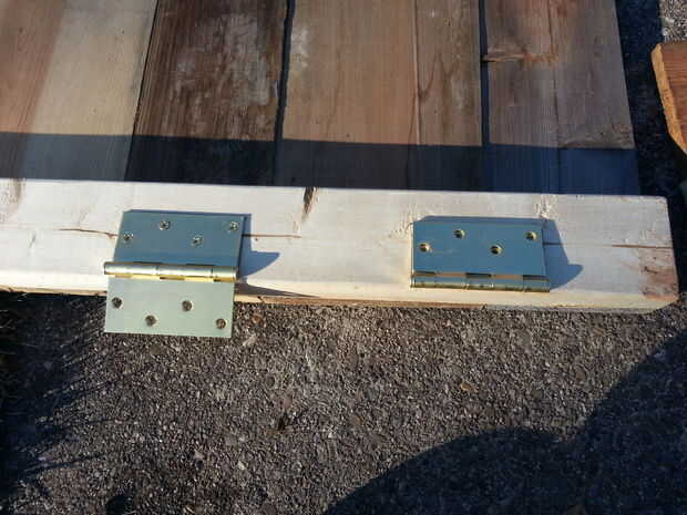 A continuación, volver a la pieza delantera y medir hasta 4 pulgadas en la parte trasera de la 2 x 4. Se trata de donde se establece el borde inferior de la bisagra, asegúrelo con los tornillos incluidos. Medir otra 4 pulgadas desde la parte superior de la primera bisagra, esto será donde se encuentra la parte inferior de la segunda articulación, seguro también.