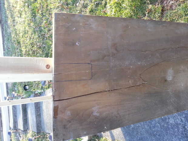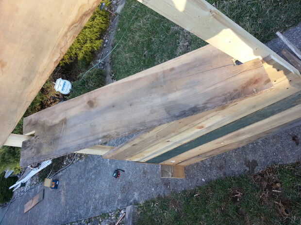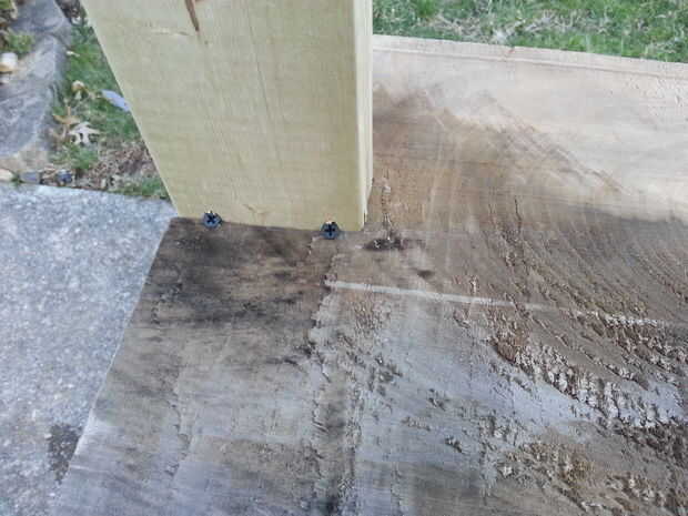 Una vez que tengas cortadas, ajuste en la parte superior. Puede que necesite golpear hacia abajo con un martillo, si, coloque un pedazo de madera entre la parte superior y la cabeza del martillo para evitar dañar la mesa parte. Una vez su, añadir un par tornillos diagonalmente en la parte trasera de la 2 x 4.