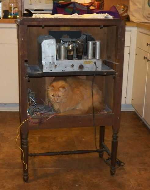 A mediados de los 90, he comprado una especie de radio único de un caballero en la Florida. Es un gabinete de lowboy de 1929 que seguramente originalmente albergaba un chasis de radio Sparton 931 (imágenes de google es tu amigo). El gabinete sí mismo está en bastante buena forma, pero faltan algunas de las molduras de madera ornamentada. Alguien hizo un trabajo razonable de configuración de algunos elementos que le dan un sentido de los elementos originales sin ser demasiado distraer. El chasis de la radio sí mismo es un chasis de radio Catedral Philco 70, fabricado en 1931. La radio trabajaba cuando fue enviado a mí, pero puso la caja sobre su lado y dejó en el patio. Eso causó la plataforma de chasis para liberarse, romper dos tubos y rasgado el altavoz electromagnética orignal en pedazos. El vendedor me envió un par de tubos de reemplazo e investigué sustituir los altavoces electromagnéticos con un altavoz moderno de imán permanente. I obtuvo un esquema y fue finalmente capaz de conseguir el trabajo de radio.