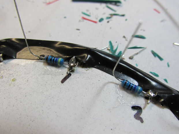 f. Pegue las resistencias abajo suben el ánodo y el ánodo de plomo a la resistencia de la curva de resistencia de la soldadura.