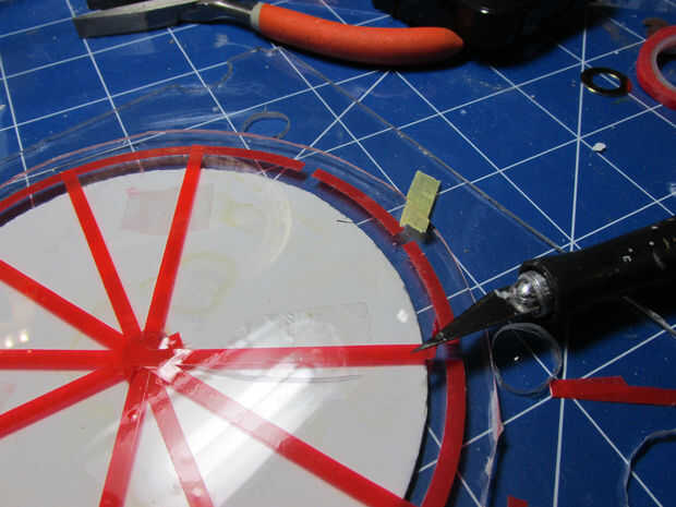 Cinta de la lente para las luces. Opté por tener claras hendiduras entre los números y a oscuras el resto de la lente.