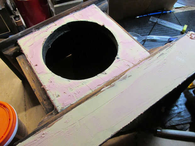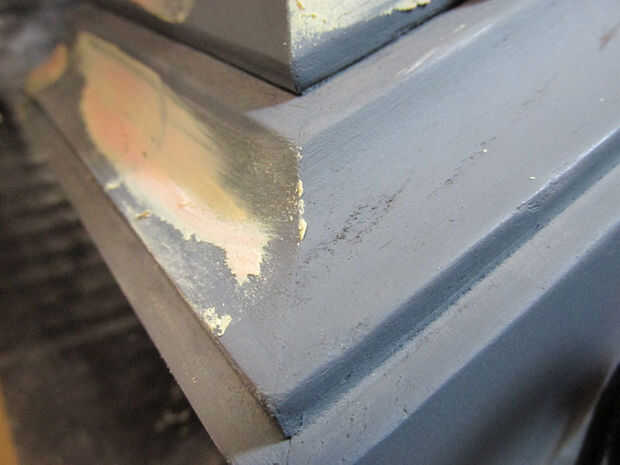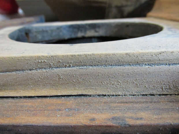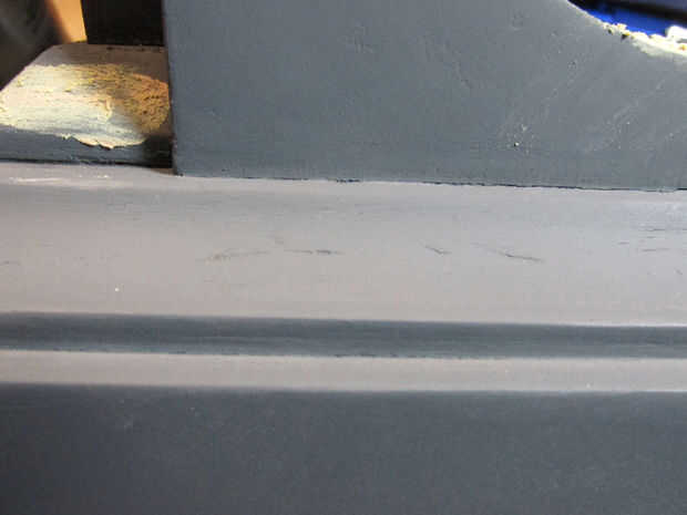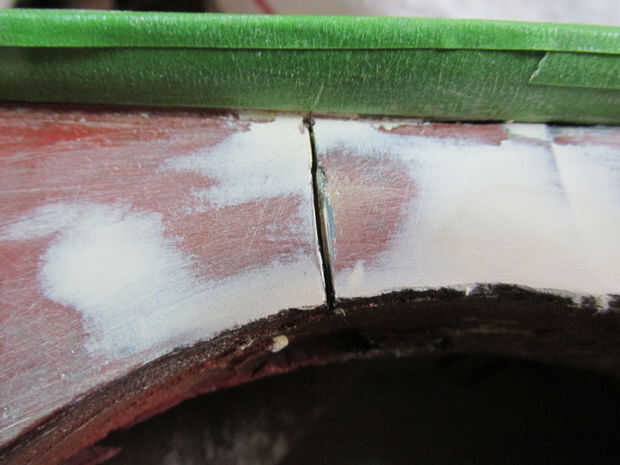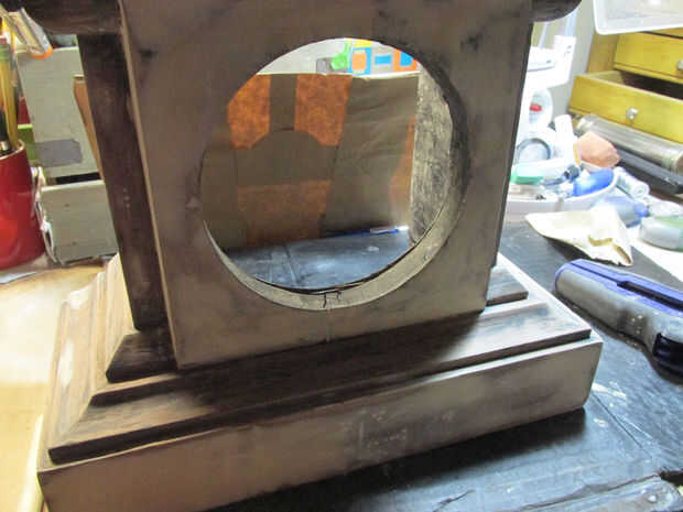Llené todos los golpes, muescas y rasguños que incluyó el deco en la parte inferior del reloj con masilla de madera luego lijada suave.