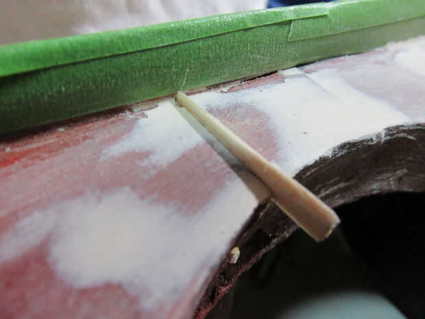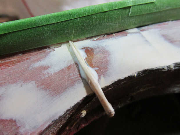 - Rellene los huecos con grandes astillas de madera (lo suficientemente grande para llenar el vacío todo) y pegado en