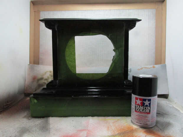 Para las áreas negras he usado Tamyia lustre negro. ¿Por qué Tamyia modelo de pintura? Respuesta corta... era en mano y es una pintura de alto brillo de secado rápida. Me mojado lijar la pintura negra con una lija de grano 1500 y usa el compuesto para pulir hacia fuera para pulir. Tres veces repetí el proceso para obtener un buen acabado duradero.