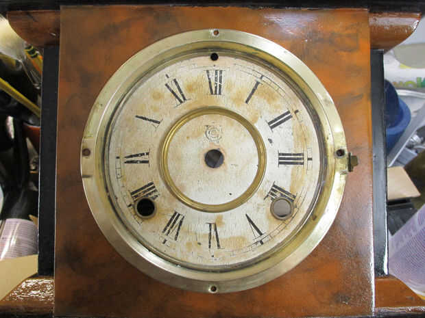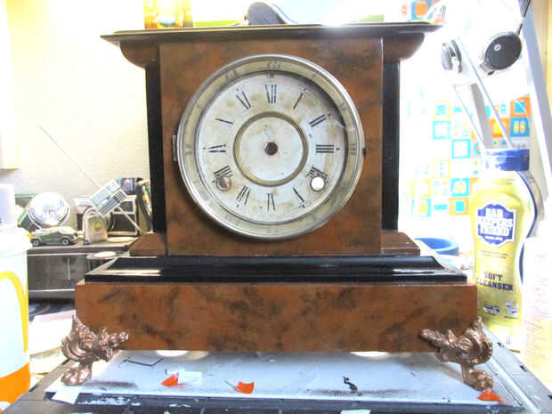 Una vez seco el conjunto de la cara, vuelven a unir el conjunto de la cara, el piso del reloj y las cuatro patas al reloj.