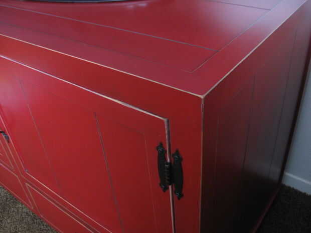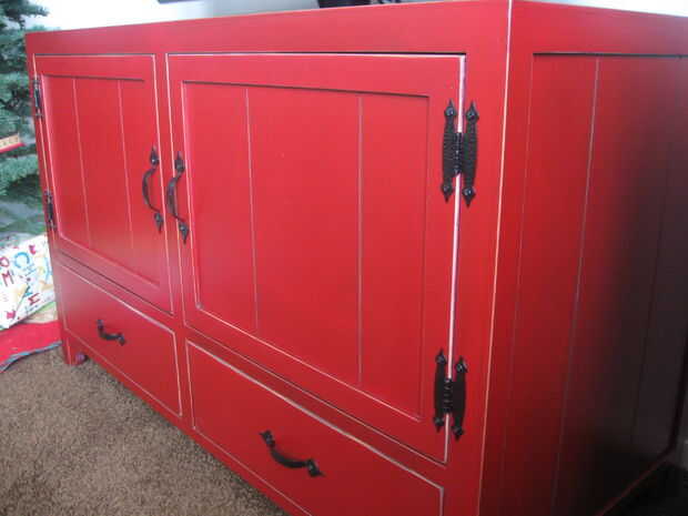 Incluyendo pintura y hardware, gasté unos $100 en esto. Usé mucho pegamento, las uñas y papel de lija, que se sumará a los costos una vez que son reemplazados. Este fue un divertido y desafiante proyecto, y mi esposa está muy orgullosa de ver el resultado final en nuestra sala de estar. Las dimensiones finales son 28" H por 44" W por 20,5" D.
