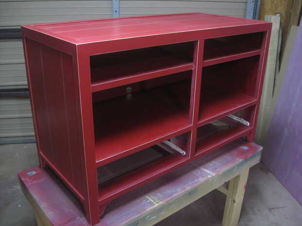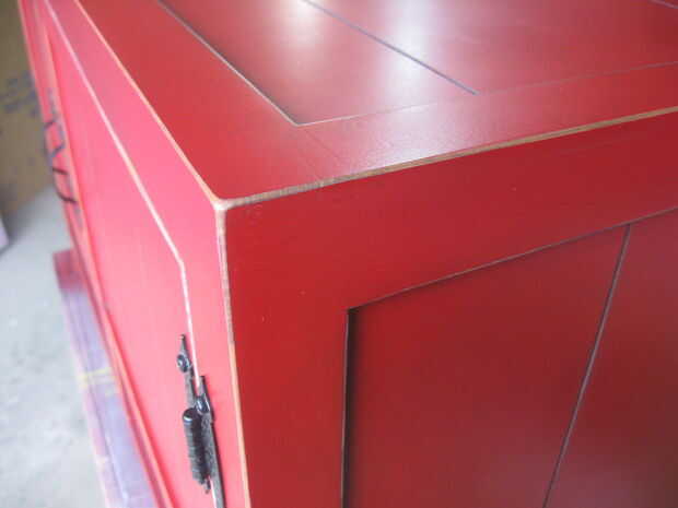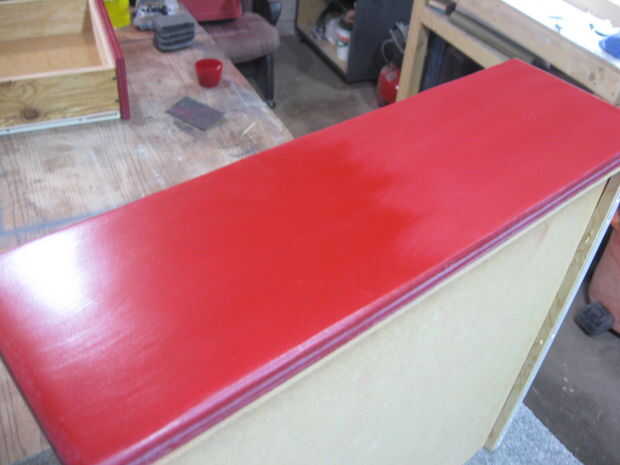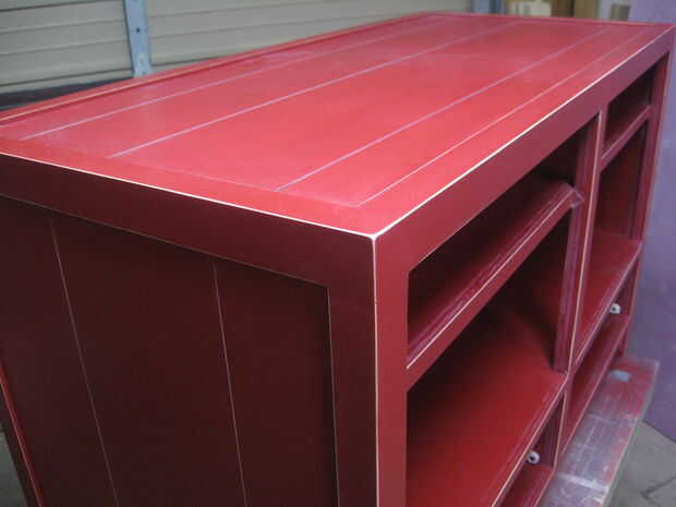 Al final me pareció la mejor manera para mí frotar todo hacia abajo suavemente con lana de acero super fino "0000". Esto quita el brillo de la pintura y le dio una mirada viejo granero-como, resistida. Entonces usé papel de lija de grano 220 para desprender las esquinas agudas en el gabinete y todas las partes.