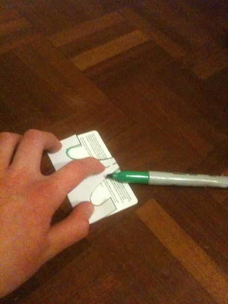 Cuando te fuiste todo el camino alrededor, doble la plantilla en la mitad de la línea punteada y la posición de esquina a esquina por lo que se puede dibujar una línea plegable en su tarjeta - imagen de referencia anterior.