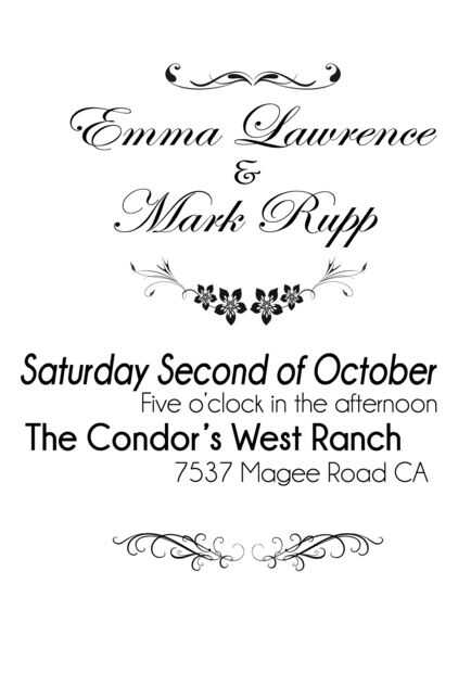 (Jono) me voy a casar este año (Emily), y esta es mi invitación de la boda, sin embargo no puedo tomar el crédito para él.Este fue diseñado y hecho por mi hermana Chloe.Actualmente está estudiando 'textiles' en la Universidad.Usted puede comprobar al