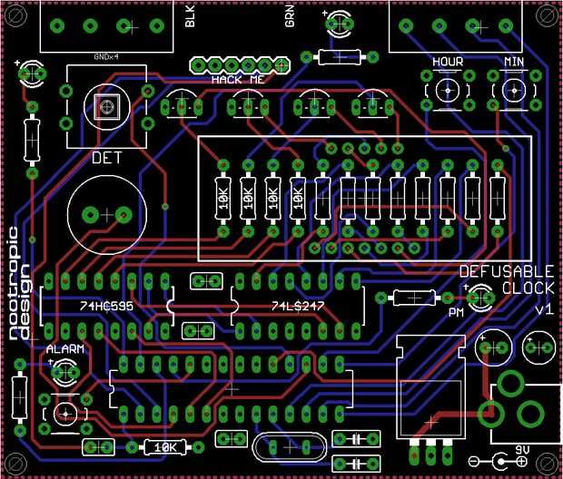 La cosa más importante que necesitas es el Defusable Clock diseño de Nootrópicos. Basados en este Arduino (ATMEGA 328) gadget vende para $32,95 en forma de kit o $45,95 montado. No incluye un adaptador de corriente de 9 voltios o tabla de FTDI para programación personalizada. Si no va a alterar el firmware de stock, no necesita el Consejo de FTDI o ningún conocimiento de programación, porque viene preprogramado. Además del kit de reloj sí mismo, he añadido estos mods: