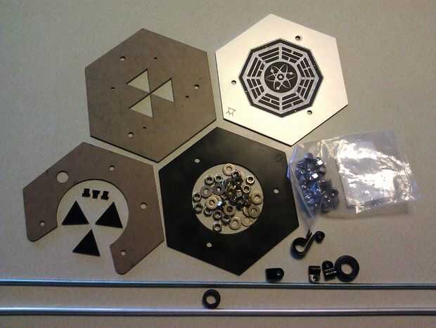 - Los 4 soportes estructurales son de 1/8 acrílico cortado a láser y pintados. Si usted elige hacer esto más grande, puede que necesite 1/4" acrílico. El tamaño que usé es hexagonal, aproximadamente 6" a través de los planos. Las formas se pueden cortar con una sierra si no tienes acceso a un láser.