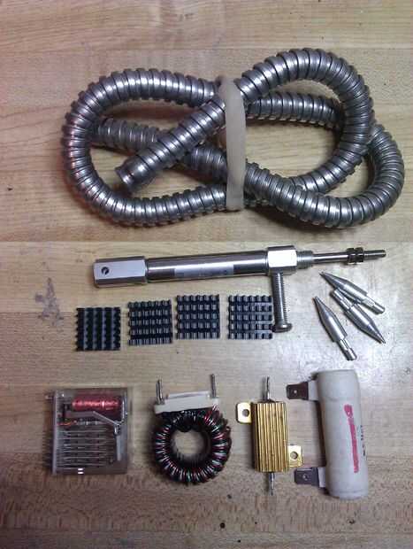 - Clasificados greebles. Esto es muy divertido parte! Recoger sus piezas de repuesto que tienen una "técnica" ver a ellos. Buenos ejemplos son toroides pequeños disipadores de calor, piezas de repuesto de los modelos, relés, cualquier cosa que se ve cool. Compré algunos pequeños disipadores de calor para los chips de memoria y similares en eBay por un dólar y encontró un toroide en un cubo de piezas de repuesto. No tengo ni idea de donde proviene el venturi, he encontrado en un montón de chatarra. Parece una vieja pieza de avión.