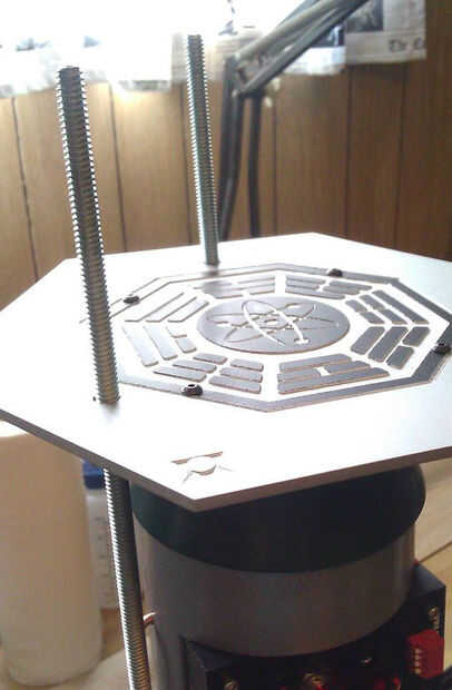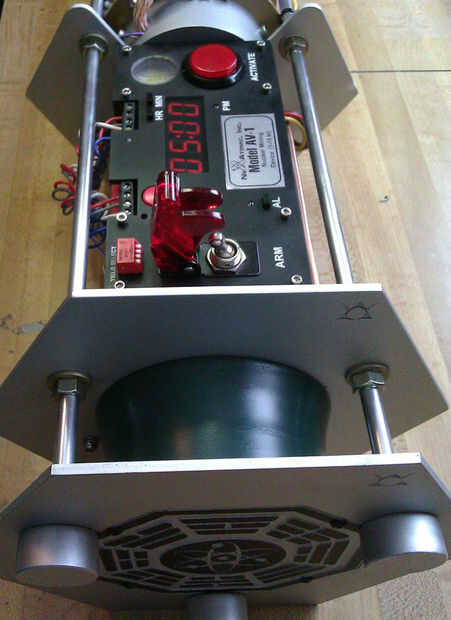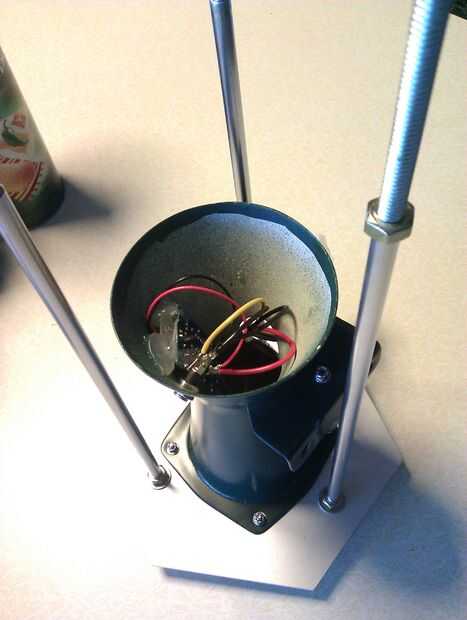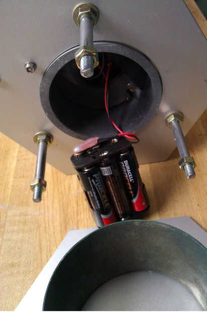 Atornillar las tuercas de 1/4"-20 bellota a uno de los extremos de mis barras roscadas, entonces puse la tapa con la parte grande del venturi en las varillas y añadido un conjunto de arandelas y tuercas. Prueba equipada el ensamblado principal con el panel de control y de la esfera sobre esto, medida y corte el tubo de aluminio a medida. Que el otro conjunto de tuercas y arandelas. Esto continué con las 2 partes medianas (los anillos de centrado), entonces prueba había montado la tapa con el venturi pequeño, corte el hilo de todo exceso.