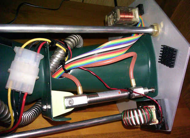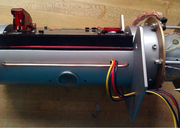 Había montado en la unidad de implosión en el chasis con 6 tornillos 6-32 alrededor del perímetro de la tubería ABS, entonces había montado en el panel de control en su corte. Las dos piezas venturi están montadas en las tapas con el hardware de 4-40.