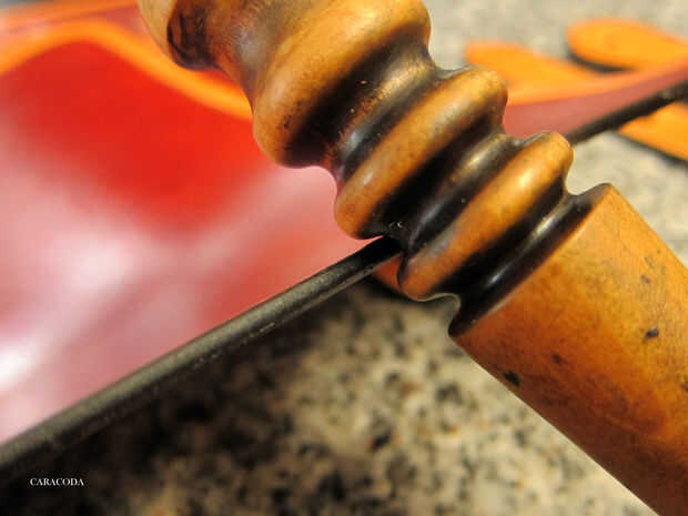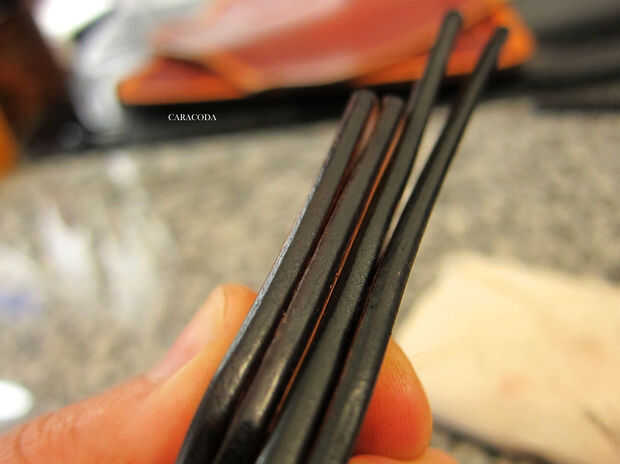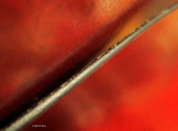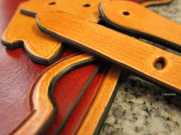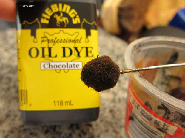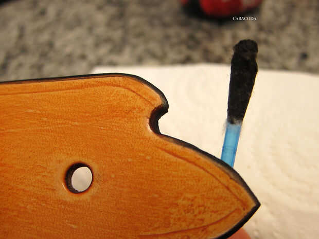 Luego tomar un dauber lana y aplicar tinte a los bordes. Usé aceite tinte de Fiebing chocolate. Ahora frotar un pedazo de cera en los bordes y pulido con un impermeable de madera o de plástico. Pulen hasta suave y agradable. Si tienes una pulidora eléctrica o un taladro - usa para acelerar el proceso.