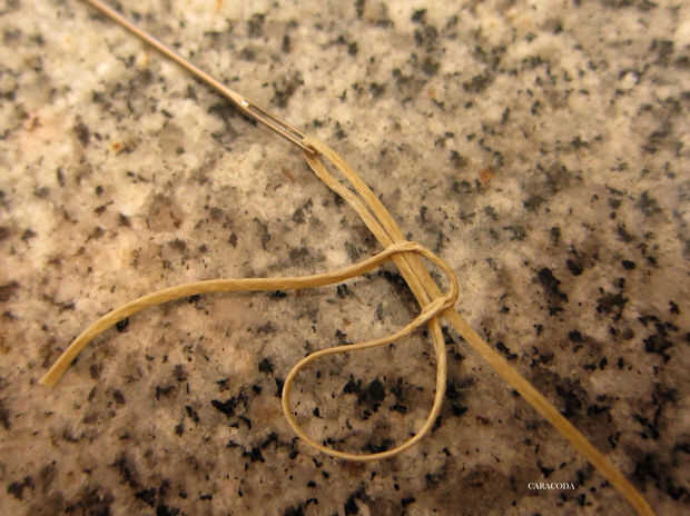 Necesita dos agujas costuras con extremos romos. Enhebre la aguja y luego empuje la aguja por el hilo dos veces, unos 5cm del extremo. Tire de la aguja a través de. Hacer lo mismo con otra aguja en el otro extremo del hilo.