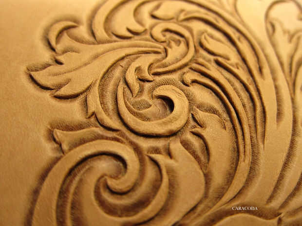 El olor a cuero... mmmmmmmm... delicioso.Trabajar con cuero curtido vegetal crudo es muy divertido. Tome un pedazo de grano lleno, cuero teñido sin que realmente no es tan atractivo por sí mismo y convertirlo una obra de arte. Mis cosas favoritas par