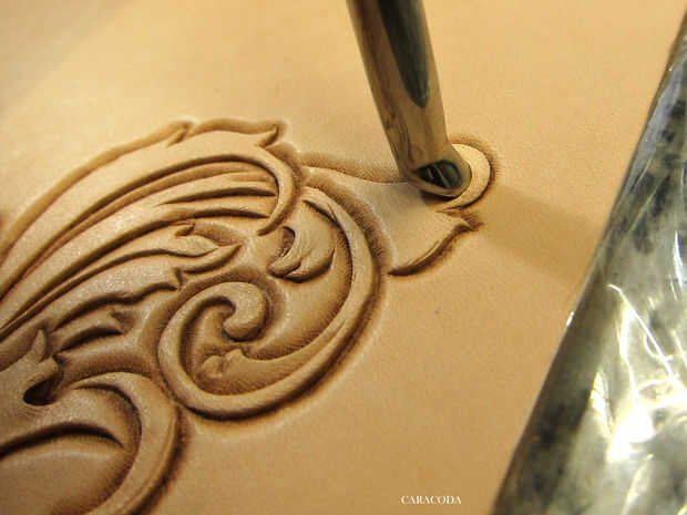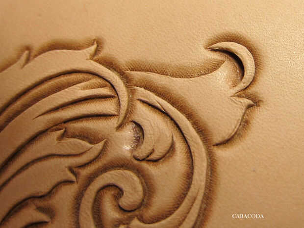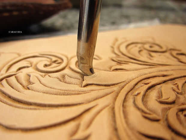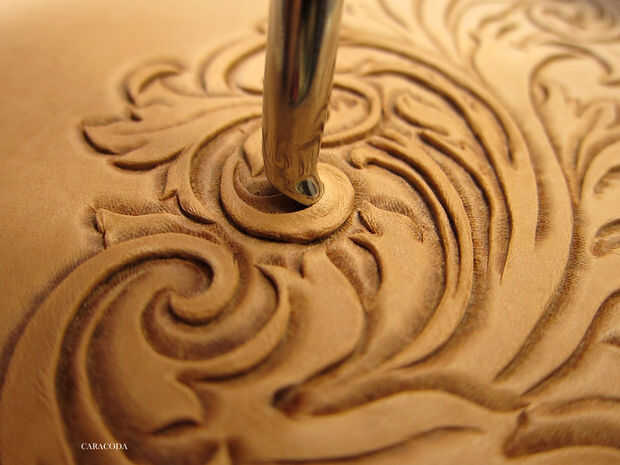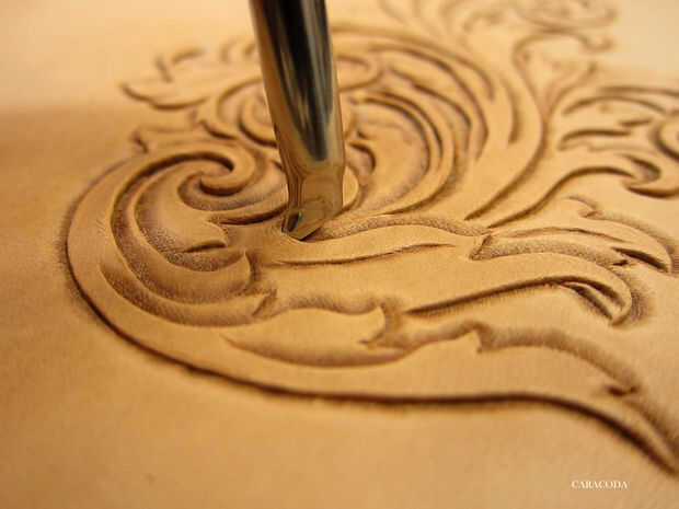 Utilizar diferentes tamaños de elevadores (o cortes) para levantar partes de flores o de hojas y agregar algo de volumen visual al diseño. No corte en el cuero demasiado profundo o penetrarán a través de.