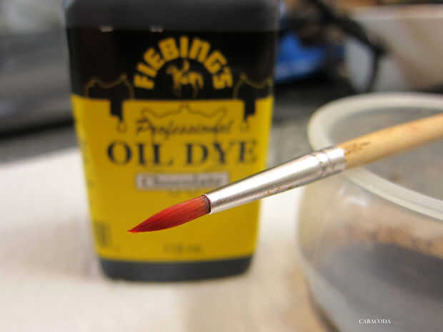 He utilizado tinte de aceite profesional de Fiebing Chocolate. Puede utilizar cualquier otro tinte, preferentemente base de alcohol.