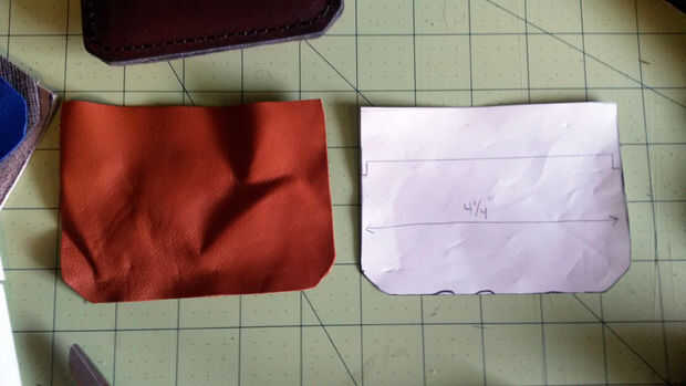 4. marcar y cortar un pedazo de cuero para que coincida con la plantilla.