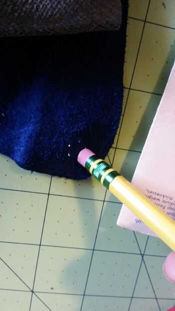 1. Coloque sus broches de presión en las aletas delanteras primero. Utilice un lápiz con borrador para forzar el cierre a través de la piel sin meter a ti mismo.
