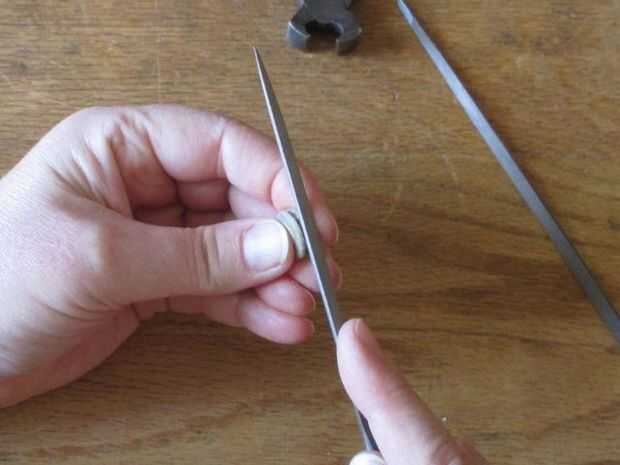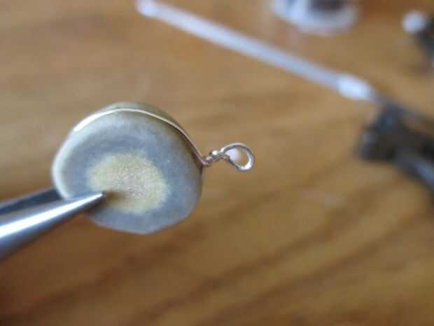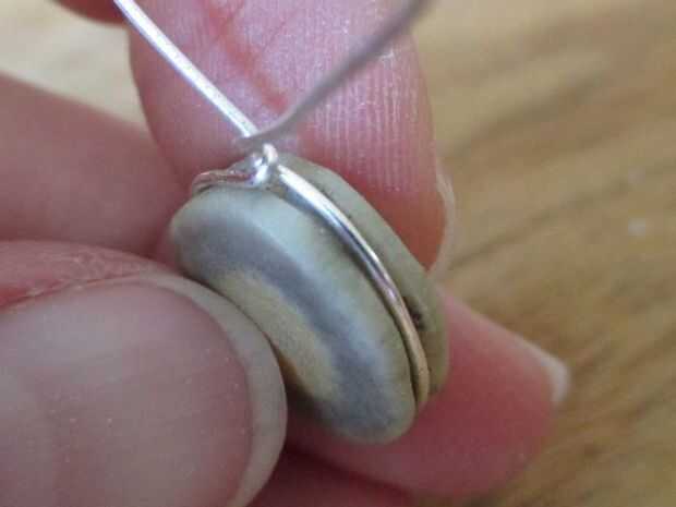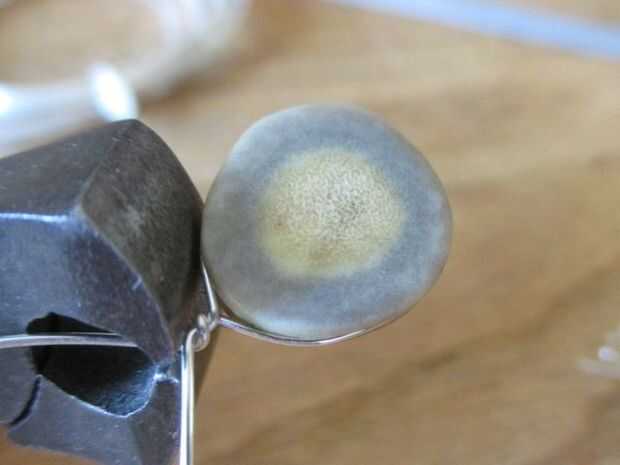 Coloque el cable en la ranura, traer el cable en la parte superior y toque dos veces para apretar y asegurar en el lugar. Utilice el cortador de alambre a un extremo cerca del twist y clip el otro extremo aproximadamente 3/8 pulgadas de largo para hacer el ciclo para el alambre de oído o anillo de salto. Cierre con cuidado los dos extremos del alambre junto por un circuito limpio.