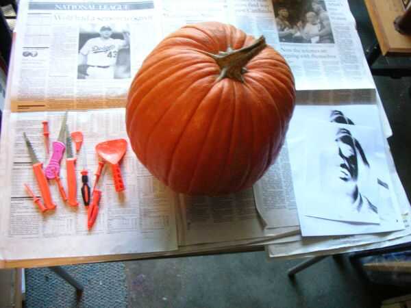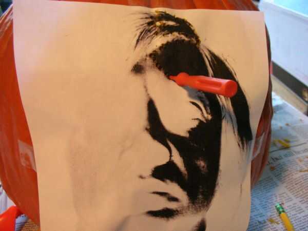 Este es mi calabaza dedicada impresionante de Steve Jobs.Es necesario:Herramienta Dremel con esfera grande y pequeño y broca de cepilloCalabazaCuchillocuchara deCintaAgujaGafas de seguridadGuantestazón de fuenteImagen a usarPaciencia...Descargo de re