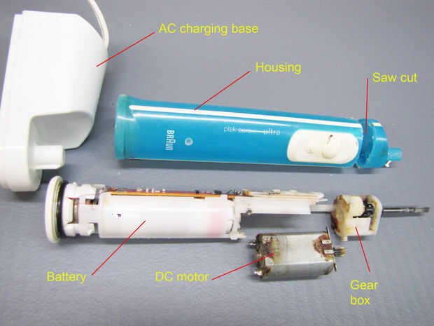¿La batería del cepillo de dientes accionada ha muerto normalmente porque los sellos no lograron entonces existe nada uso ahí antes de tirarla (o bajo reglas del EU enviarlo para su reciclaje)?Paso 1: Bits utilizables posible recuperadoÉste produjo u