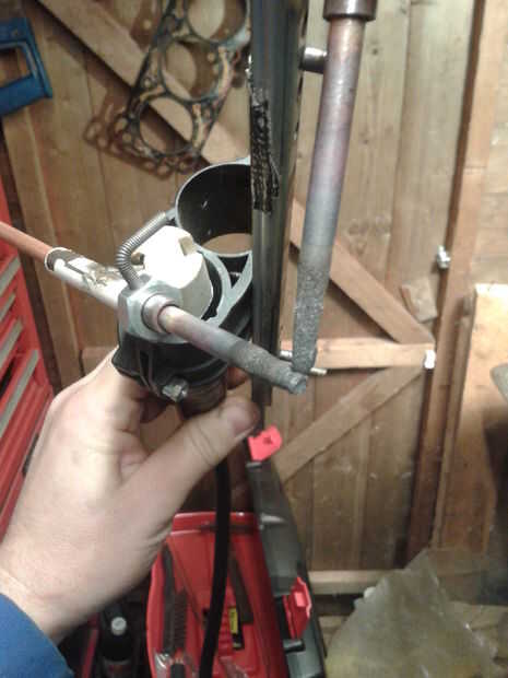 La ranura bien montado alrededor de la palanca de sujeción del electrodo y con una pequeña cinta adhesiva los diámetros emparejó bastante bien.