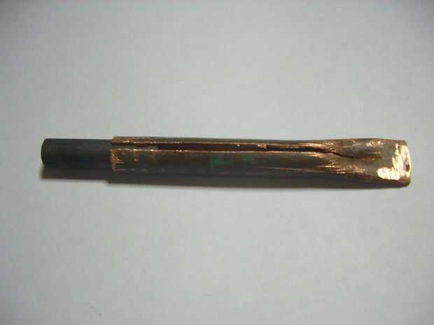 Corté un pedazo de ese tubo de cobre, unos 3 cm más largo que el carbón de la batería. Entonces hizo un corte longitudinal para que el carbono podría entrar fácilmente y ser capaz de apretar con una pinza. Yo aplanar el otro extremo de la tubería de cobre.