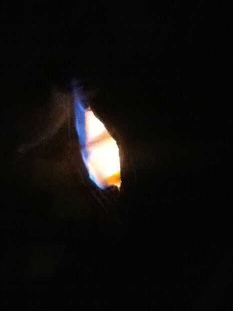 Encender el lugar encerado y se deja quemar el resto del interior como que gire lentamente, quemando todo el interior.