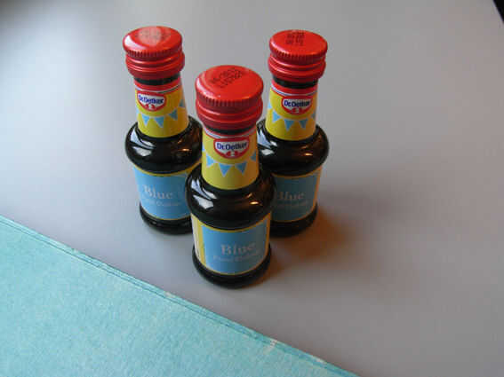 Para el tablero de color, tinte de comida a base de agua azul es bueno para resultados rápidos. Deje secar y repita el proceso si desea un color más oscuro.