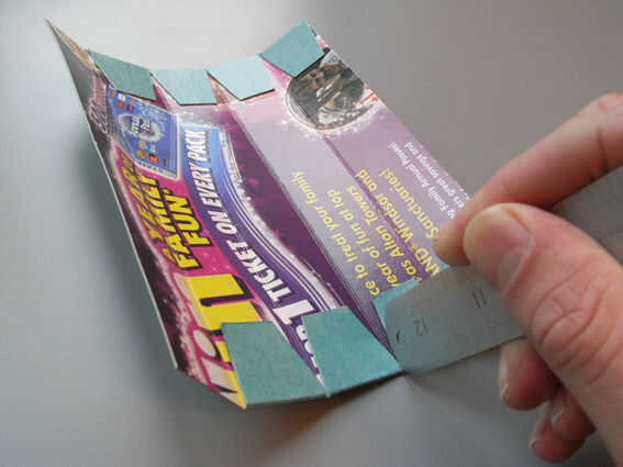Una vez seguras, donde las fichas se pliegan desde el borde exterior, los puntos «V», utilizando una regla o un borde recto, empuje hacia abajo en estos puntos para que el material doblado para arriba se hace más delgado. Esto deja la tarjeta de estiramiento y partir el barniz.