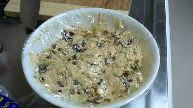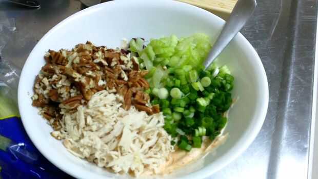 ensalada de pollo fácil, delicioso con un toque únicoPaso 1: ingredientesUsted necesitará lo siguiente:1 c cocina Jerezagua de 1 c3 pechugas de pollo1/2 cebolla roja, cortada en cuboscrema de 1/4 cmayonesa de 1/4 ceneldo 1 cucharada secada (fresco es