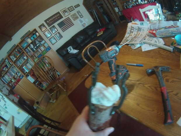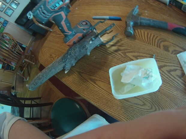 Saque el clavo en el extremo a continuación martillo hacia atrás con la toalla de papel en el extremo.