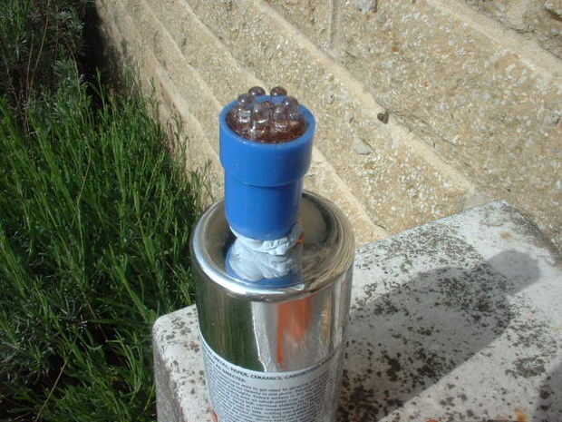 Los agujeros fueron perforados para las conexiones eléctricas, y he intentado sellar con Blu-tack (funcionó OK, pero gotear un poco).