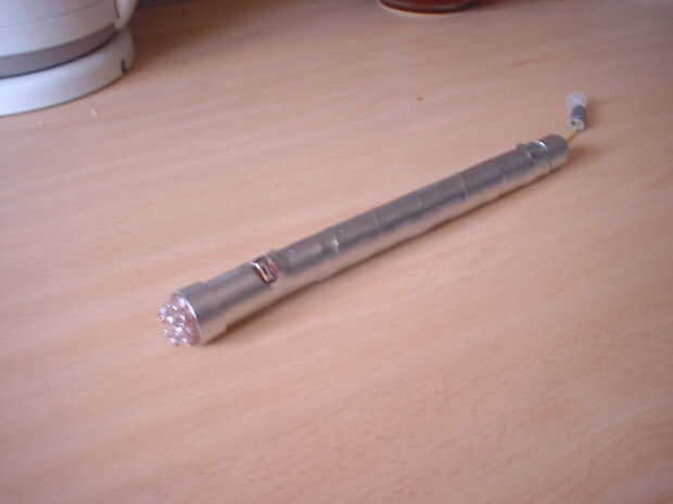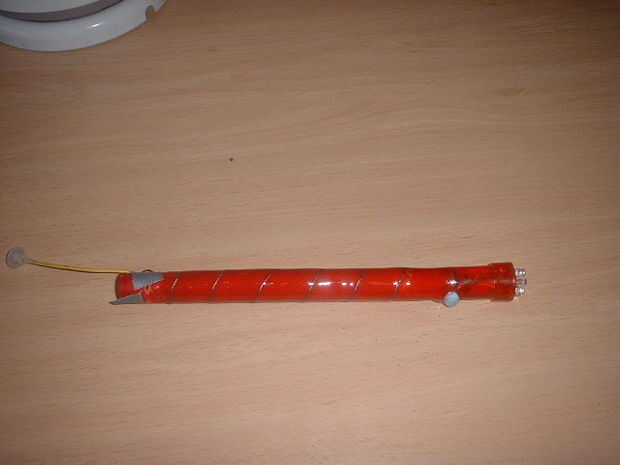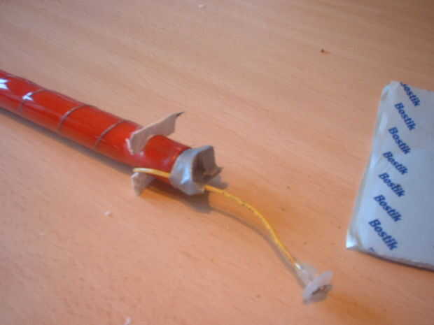 Un poco más de resina fue agregada a la parte trasera, con las ranuras para presillas-llenadas (temporalmente) con la tarjeta envuelta en cinta de PTFE. El extremo abierto se bloqueó con un pedazo de Blu-tac, envuelto en su propio papel cera. El interruptor fue enmascarado con Blu-tac, y los LEDs enmascararon con Blu-tac envuelto en bolsas de plástico