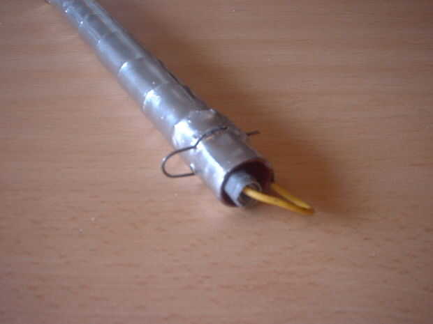 La mayoría del aislamiento se desconectó el cable y los hilos nuevamente envuelven.
